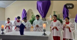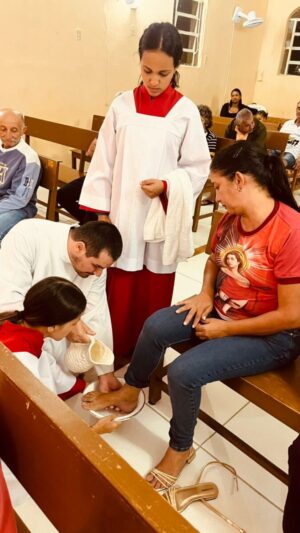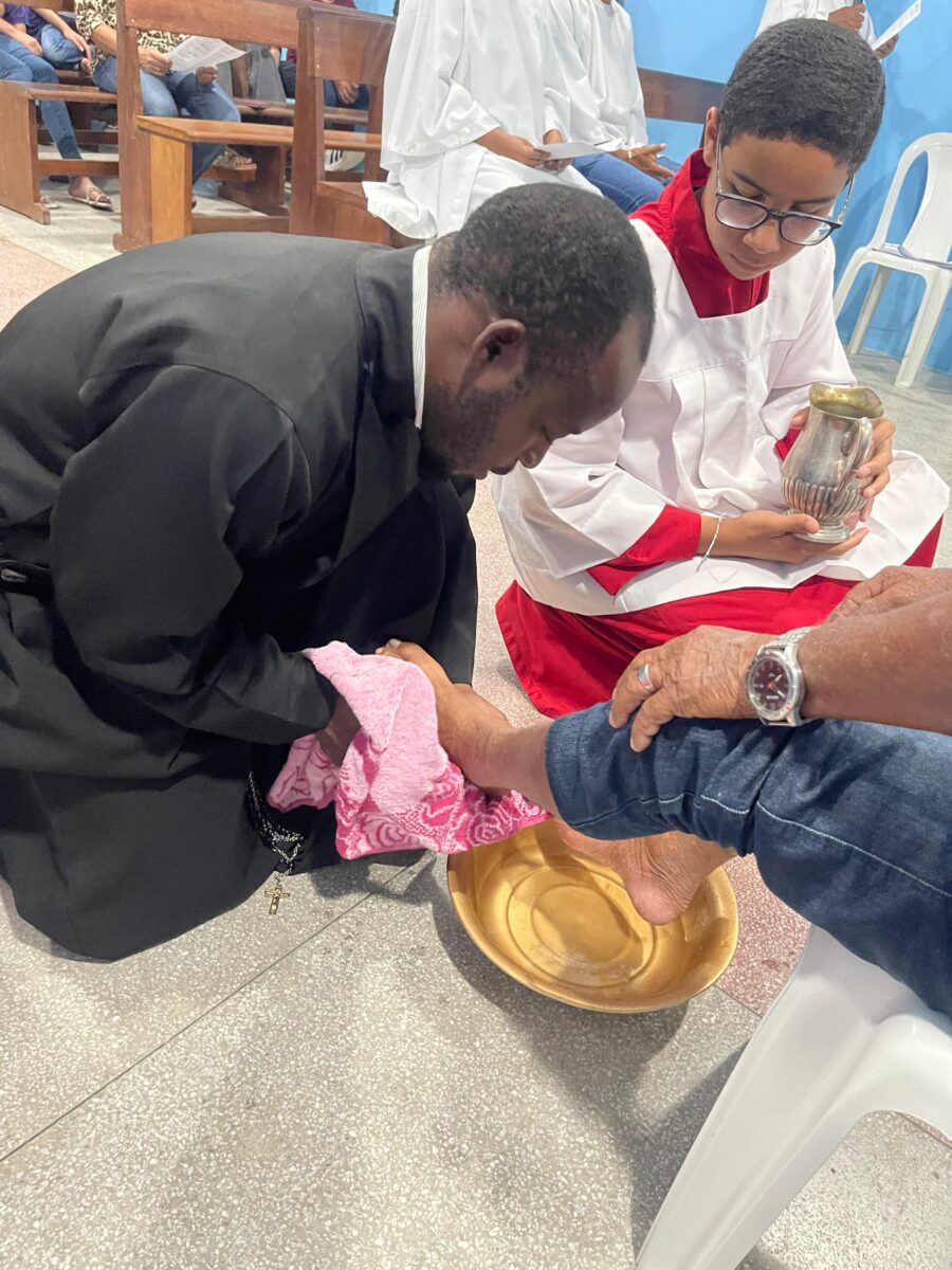 Os postulantes (José Carlos, Deomar e Marco Antonio) e junioristas (Fernando e Fidel) da comunidade Dom Helder Câmara participaram intensamente da Semana Santa, unindo a experiência pessoal com a ação missionária.