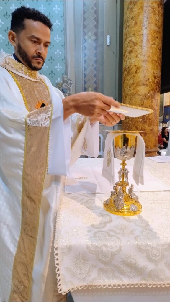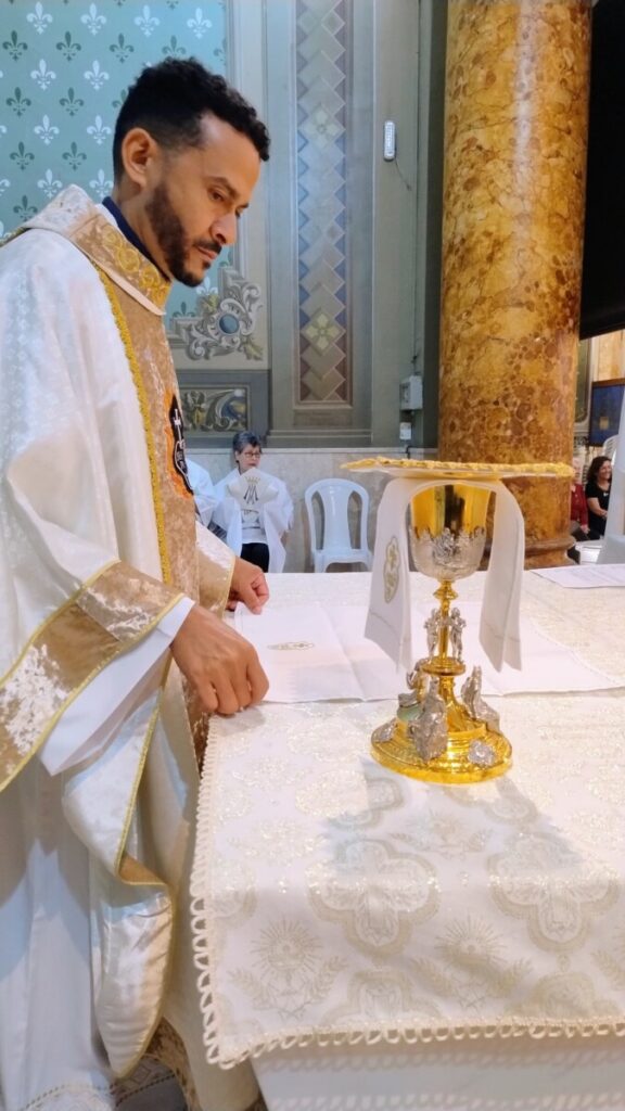 No início da celebração, o novo Pároco fez a Profissão de Fé e no final; agradeceu a confiança a ele depositada pela Congregação e Arquidiocese e se comprometeu a ser um fiel administrador desta comunidade paroquial. Pe. Chagas fez um agradecimento especial ao seu antecessor, Pe. Norberto Donizetti Brocardo.