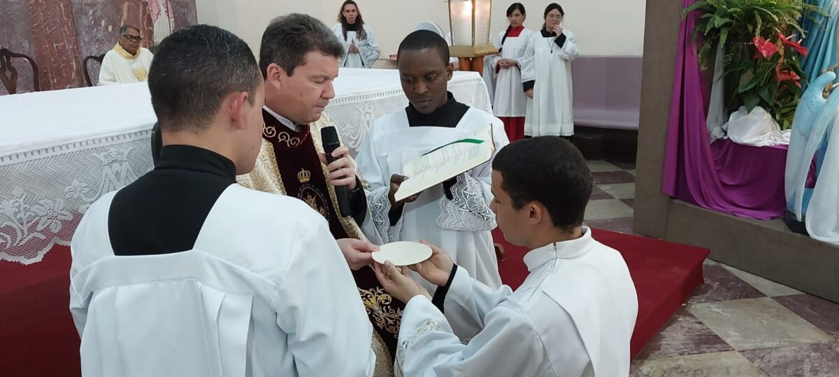 Os novos leitores e acólitos instituídos são: Anderson Carlos Ramos, cp; Francisco Maria da Esperança, cp; José Eduardo Laureano, cp e Valter Cavalcanti de Albuquerque, cp ambos cursam o 3° ano de Teologia na Pontifícia Universidade Católica do Rio de Janeiro.